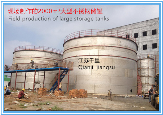 上圖為:河北冀衡化學(xué)股份有限公司現(xiàn)場(chǎng)制作的2000m3不銹鋼儲(chǔ)罐
